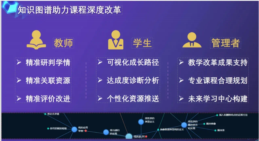 据悉,从“十三五”规划纲要正式将“数字中国”上升为国家战略开始,教育领域的数字化改革逐渐加速。2022年,国务院印发《“十四五”数字经济发展规划》,提出深入推进智慧教育。教育部系列文件均要求开展知识图谱相关建设工作。通过构建“知识图谱”,可以直击传统教学及混合式教学存在的痛点,实现课程教学精准化,教学评价科学化,教学创新多样化,学习路径个性化,学习管理全面化,资源推送智能化,助力课程深度改革,赋能数字化教学新生态。
