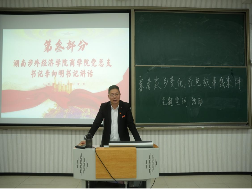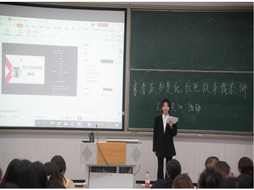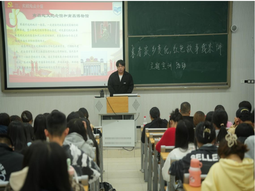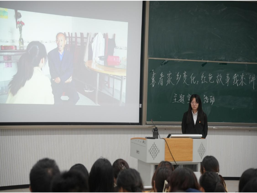 为深入学习宣传贯彻党的二十大精神,引领广大青年深刻,感悟在以习近平同志为核心的党中央坚强领导下,新时代党和国家事业取得的历史性成就和发生历史性变革,青年学子暑期重走红色足迹、追溯红色 记忆、访谈红色人物、挖掘红色故事、体悟红色文化,感受党的 红色精神伟力。引导青年通过返回家乡看变化、重走故地看新颜、深入乡村看振兴、走进一线看发展,以实际行动学习宣传贯彻党的二十大精神。商学院于11月9号在二教四阶举行了以“喜看家乡变化,红色故事我来讲”的红色主题宣讲活动。