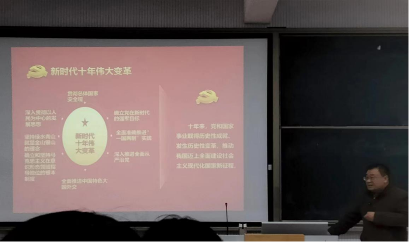 首先,刘文丰老师针对党的章程、党的基本知识、发展对象产生问题三个方面做出强调,加强对入党积极分子的党性教育;随后,刘老师带领同学们回顾党史路程,讲述党的一大到党的二十大的故事,回顾百年奋斗光辉路,进一步提升发展对象的意识,使大家深刻认识到时代赋予新时代青年的使命和担当;最后,刘老师希望大家认真领会会议精神,对照个人实际,缕清思路,找准方向,用理论武装头脑,指导实践,努力学习,切实把党的精神内化于心、外化于行,坚守初心使命,以忠诚担当、昂扬向上的精神状态,奋进开启新征程!