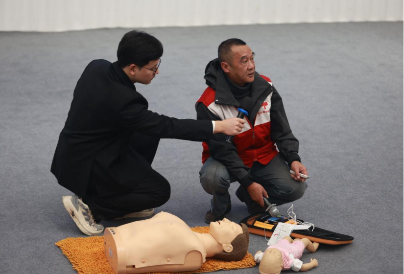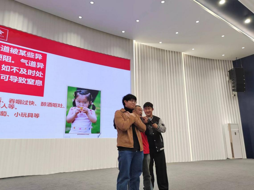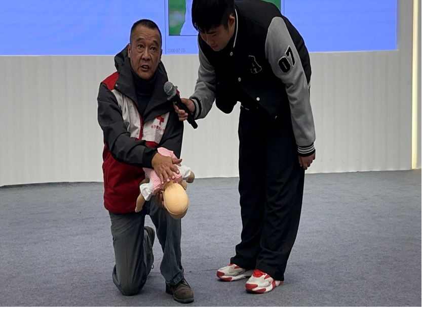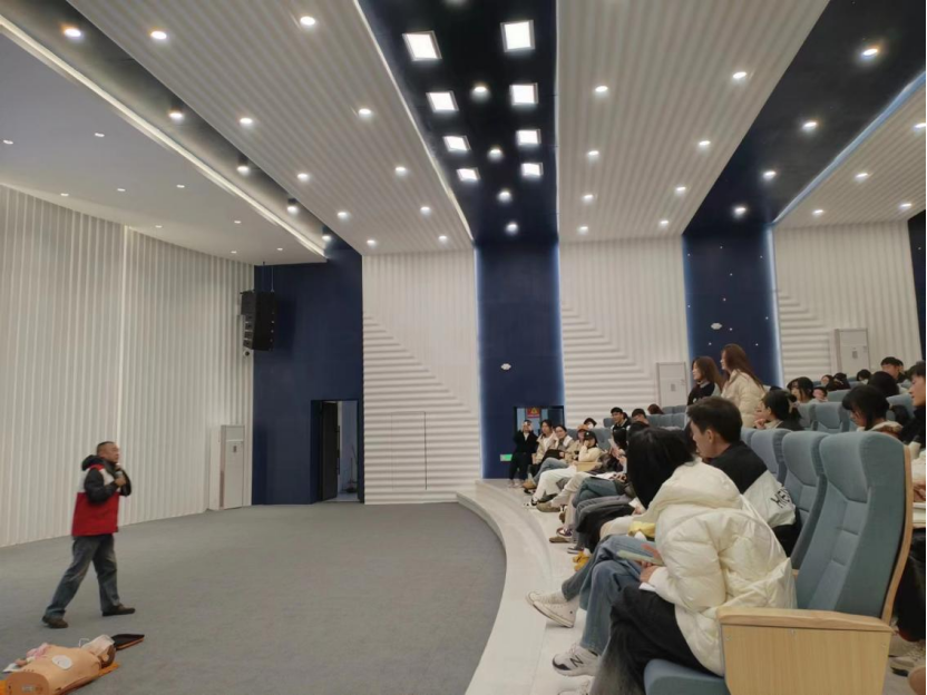 孙怀东老师老师用生动的语言和形象的事例为大家讲述了及时急救行为的重要性和必要性,并着重介绍了基础心肺复苏的技巧和AED(自动体外除颤仪)的使用方法。