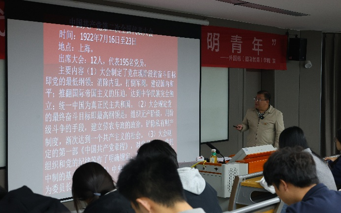 授课过程中,刘老师讲述了从党的一大到党的二十大这一漫长历史进程中,历次大会所蕴含的精神内涵是党不断前进的精神密码。结合具体案例,生动阐释了中国共产党全国代表大会的选举程序、职权范围以及党的理论体系和重要指导思想。他重点指出,新时代十年来的伟大变革,是党和国家事业发展进程中具有里程碑意义的关键阶段,鼓励全体学员筑牢信仰之基,自觉践行“三个务必”和“六个必须坚持”,把个人理想融入国家发展大局,以实际行动诠释新时代青年的责任与担当。