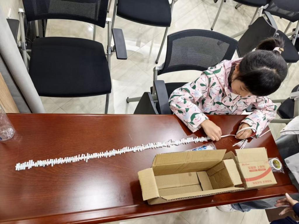 活动展示环节,孩子们兴奋地展示自己的纸箱书立、吸管泡泡机等创意作品,志愿者为完成挑战的孩子颁发的“地球守护者”贴纸,他们郑重的贴在胸前。活动尾声,全体孩子与志愿者共同举起作品,齐声高喊“垃圾大变身,创意无极限”的环保口号,清脆的声音回荡在社区活动室,成为环保理念传播的生动注脚。