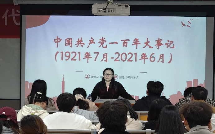 百年征程波澜壮阔,初心如磐薪火相传。为扎实推动党史学习教育,引导全体发展对象从党的奋斗历程中汲取智慧与力量,商学院于2025年11约11日在世纪讲坛3号教室成功举办党史学习教育专题党课。本次讲座特邀学校党委组织部段蜜老师以《中国共产党一百年大事记(1921年7月—2021年6月)》为题,以鲜活史料为笔、以时代视角为墨,带领同学们回溯党的百年峥嵘岁月,在重温光辉历程中凝聚奋进力量,让爱党爱国的赤诚之心在现场激荡共鸣。