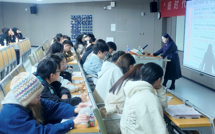 “学史明理、学史增信、学史崇德、学史力行”的核心要义,为同学们筑牢理想信念根基。她以历史发展为脉络,从鸦片战争后的民族觉醒娓娓道来,详细梳理马克思主义在中国的传播路径,生动还原五四运动中青年学子的爱国行动与思想觉醒,还通过现场互动分享、播放历史视频等形式,让同学们直观感受历史温度,深刻理解青年先锋的使命担当,引发强烈共鸣。