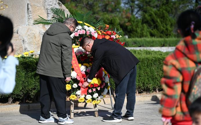 在彭德怀雕像广场,缅怀仪式在庄严肃穆的氛围中拉开帷幕。两名学生代表迈着沉稳的步伐向雕像敬献花圈,商学院党总支书记廖立彬与校党委组织部刘文丰老师上前整理缎带,表达对革命先辈的无限敬意。全体师生肃立默哀、深深三鞠躬,以质朴真挚的方式致敬英魂。随后,师生列队缓步绕行雕像,凝视元帅坚毅的神情,感悟其驰骋疆场、为国为民的赤胆忠心。