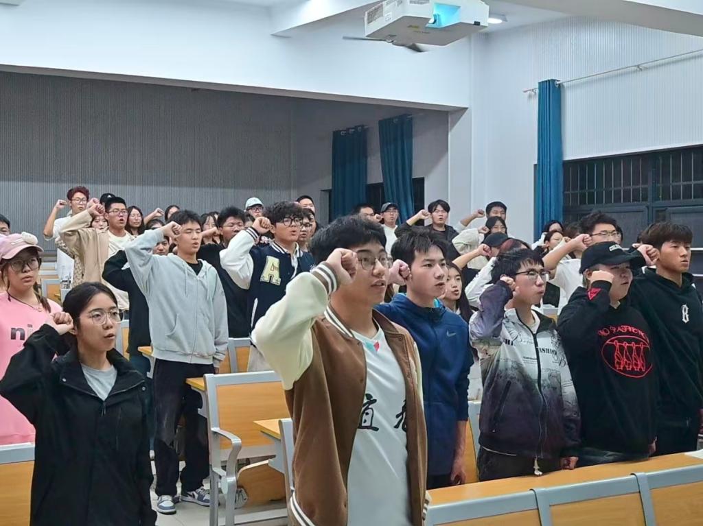 随后,在庄严的宣誓环节,全体同学高举右拳,郑重宣誓:“严格遵守学风建设‘三三五一’,上课专注听讲,课后勤于钻研,营造书香班级;积极参与研讨,主动交流互助;以勤奋夯实基础,用笃行追逐梦想,全力投身学风建设,共创优良学习氛围!”铿锵有力的誓言回荡在会场,表达了商学院学子以优良学风建设推动自我成长的坚定决心。