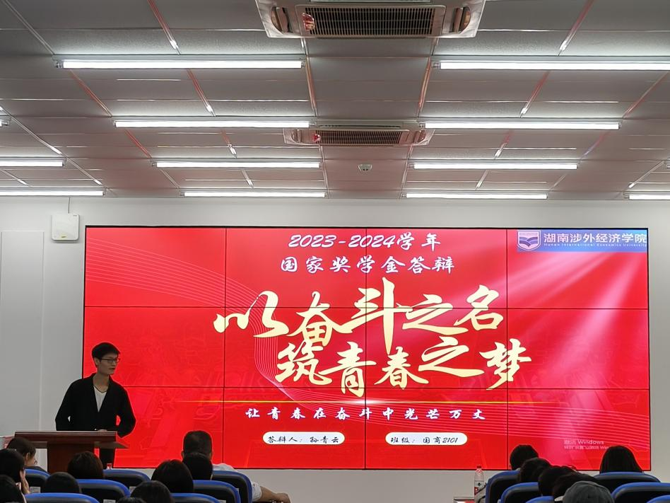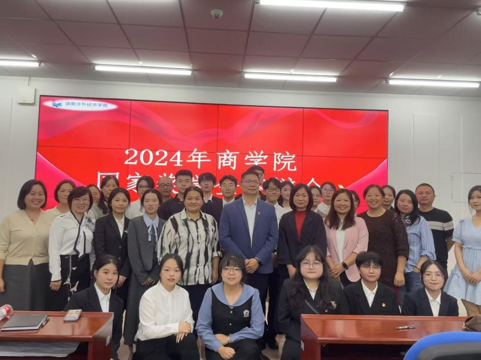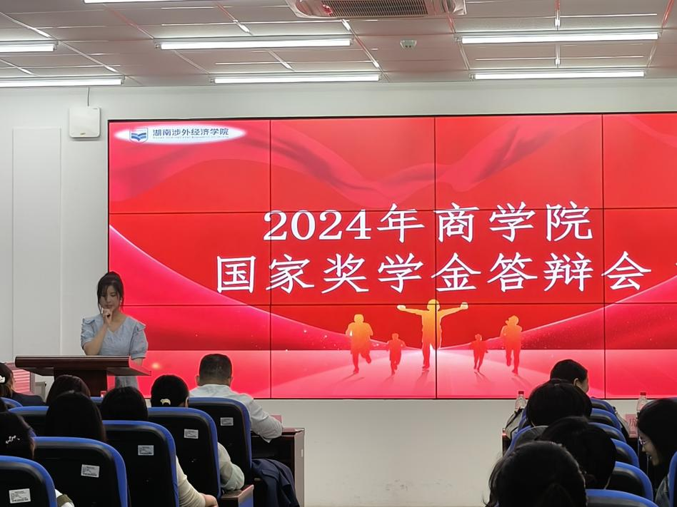10月9日晚七点,湖南涉外经济学院商学院在新综合楼C315举行2024学年国家奖学金答辩会,商学院党总支书记李向明、学工处资助科庞娟、校督导办余俊丽、商学院党总支副书记刘娟、商学院刘雅、龚红梅、钟芬芳等老师担任本次答辩会评委。与会答辩学子及辅导员老师出席会议。