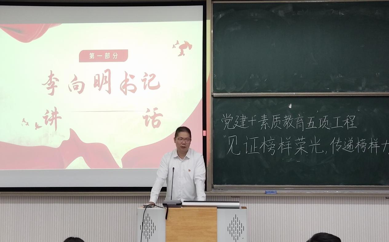 活动伊始,商学院党总支书记李向明发表讲话。“见证榜样荣光,传递榜样力量—我是主讲人”主题宣讲活动是商学院开展党建+素质教育“五项工程”重点活动之一,鼓励在座学生以此为契机,学习优秀榜样,鼓励同学们在实践中勇于探索,不断突破自我,从榜样身上汲取奋进力量,以更加强烈的使命担当,把个人的奋斗融入国家富强、民族振兴的历史进程,为实现中华民族伟大复兴贡献智慧和力量。