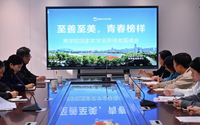 为弘扬学校“至善至美”的育人理念,充分发挥优秀学子的榜样引领作用,2025年11月4日,商学院在第二教学楼113会议室举办国家奖学金获得者圆桌会。会议搭建了校院领导、教师与青年学子的深度对话平台,共话青春成长与使命担当。湖南涉外经济学院副校长王萍、商学院党总支书记李向明、党总支副书记刘娟、团总支书记马尚奇、学风建设龚红梅、资助中心刘雅等领导老师与16名国奖获奖学子围坐一堂,交流气氛热烈融洽。
