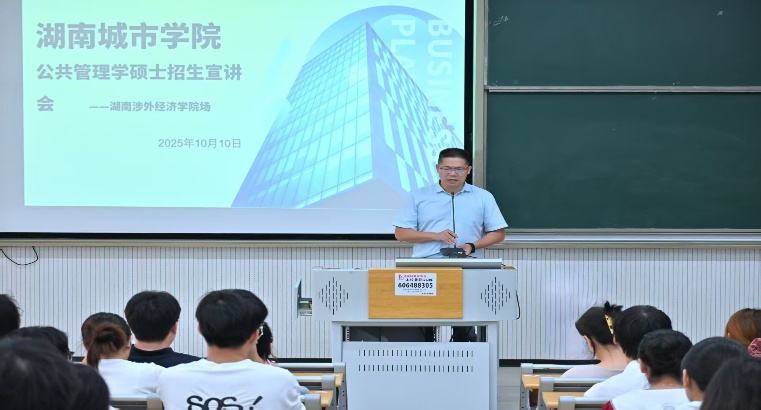 2025年10月10日,商学院在二教三阶教室举办考研宣讲会。本次宣讲会以湖南城市学院作为主讲单位,吸引了众多怀揣深造梦想的商院学子齐聚一堂,现场座无虚席,气氛热烈。