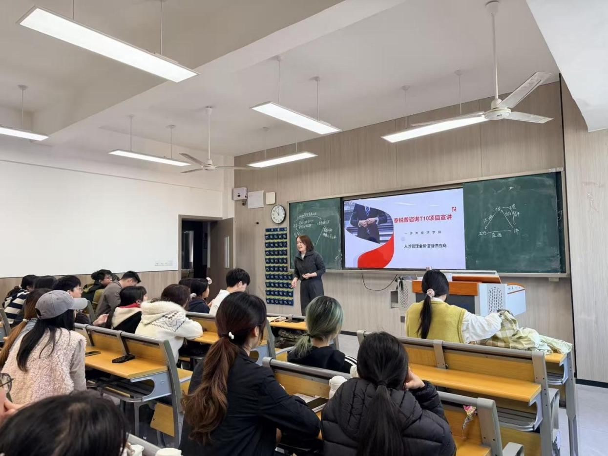 3月21日,简聘集团泰锐普咨询携手湖南涉外经济学院,成功举办T10项目实习生专场宣讲会,聚焦人力资源专业大三学子,搭建校企人才对接桥梁,助力学子将专业知识与企业实践深度融合,开启职业成长新征程。简聘集团合伙人泰锐普咨询总经理欧阳倩女士详细介绍了企业发展历程、核心业务、企业文化及人才培养理念,重点解读了T10项目的核心定位、实习内容、培养体系及岗位要求。T10项目是泰锐普咨询针对人力资源领域打造的专项实习生培养项目,旨在为企业储备优质人力资源专业人才,同时为高校学子提供沉浸式实践平台,助力学子快速熟悉人力资源岗位核心工作,掌握招聘配置、员工关系、薪酬福利等实操技能。