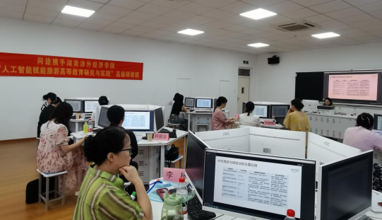在研修班的课堂上,学员们认真聆听专家讲座,积极参与互动交流,现场学习氛围浓厚。从学员们专注的神情与积极的反馈中,不难看出此次研修班的内容具有很强的针对性和实用性,切实满足了学员们对于人工智能在旅游高等教育领域知识的学习需求。