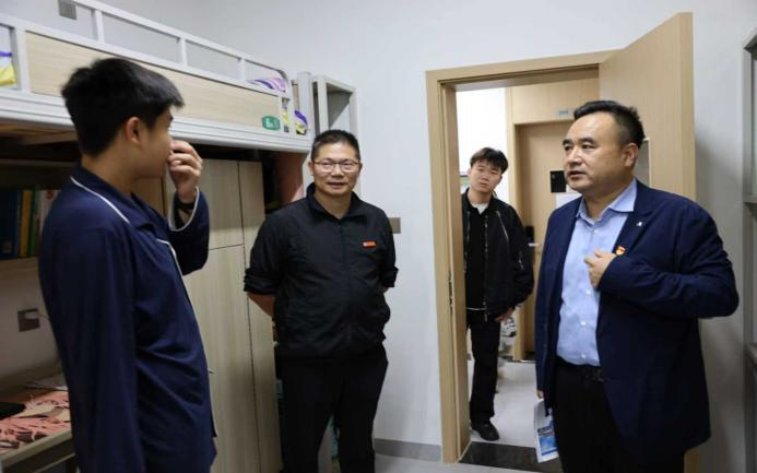 走访过程中,学院领导一行走进一间间学生宿舍,与同学们进行了亲切友好的交流。“家乡是哪里的?”“假期有什么安排?”“学习和生活上有没有什么困难?”一句句暖心的问候,迅速拉近了师生之间的距离。领导们细致地查看了宿舍的设施与环境,关切地询问同学们在用电、网络等方面的具体情况,现场洋溢着轻松、融洽的氛围,温情叮嘱,筑牢安全“防护墙”, 倾听心声,搭建沟通“连心桥”, 佳节同庆,传递学院“家文化”。