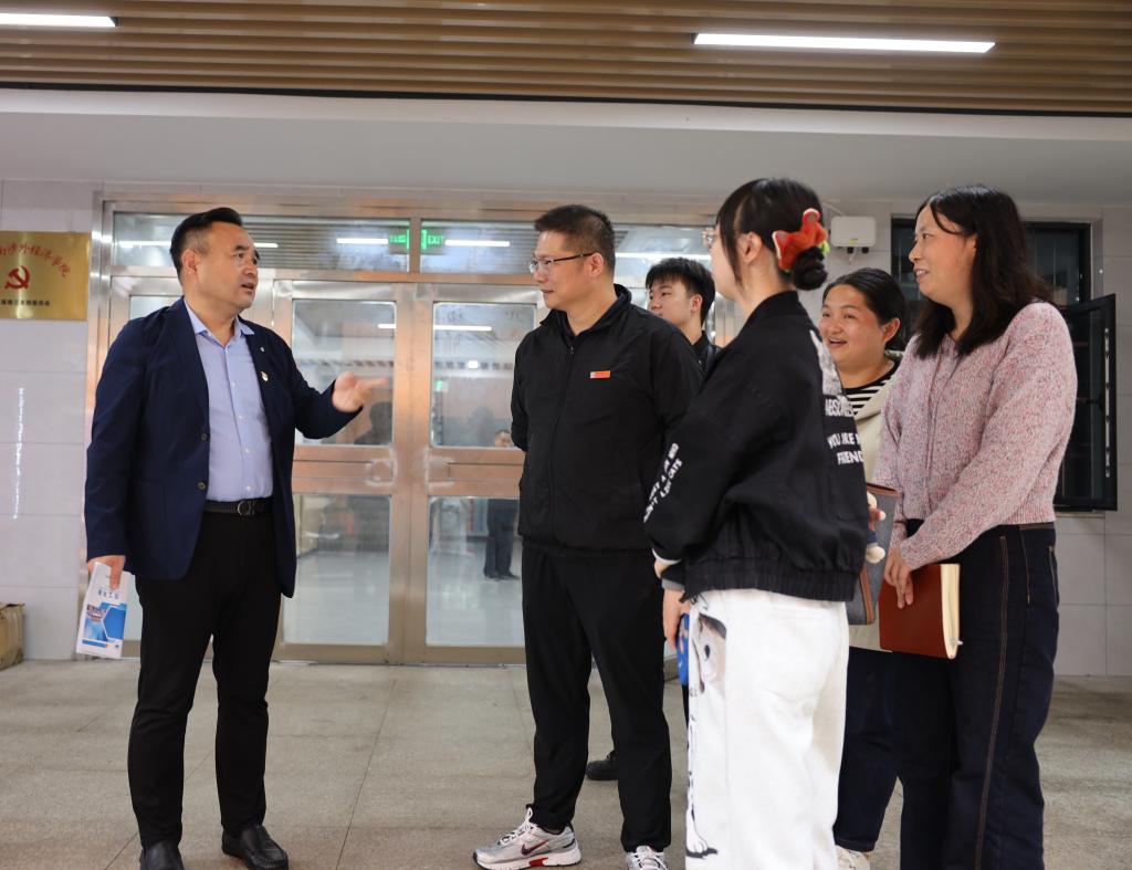 佳节将至,秋韵渐浓,真情送暖。为深入了解在校学生的学习与生活状况,筑牢校园安全防线,确保全体同学度过一个温馨、祥和、平安的假期,2025年9月26日下午,商学院组织开展了一场以“宿舍送温馨,安全迎佳节”为主题的暖心走访活动。此次活动伊始,学校常务副校长兼学院院长陈斌、商学院党总支书记李向明等领导首先在二教113会议室共同出席了“党建+平安学院”建设活动启动仪式,为构建更高水平的平安校园凝聚共识、明确方向。启动仪式结束后,领导们随即深入学生宿舍,与学子们促膝长谈,面对面倾听心声,零距离共话平安。