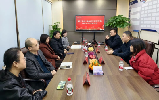 2025年12月26日上午,湖南涉外经济学院商学院国际贸易系、供应链管理与市场营销系与联宇集团校企合作签约暨授牌仪式在联宇集团长沙分公司隆重举行。双方代表共同为合作基地揭牌,标志着商学院在校企协同育人、产教深度融合方面迈出关键一步,正式开启与行业龙头企业共育高素质应用型人才的新篇章。