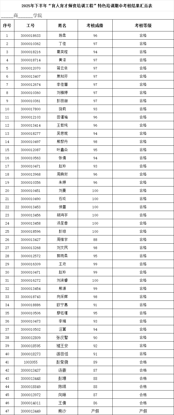 2025年下半年“育人育才师资培训工程”特色培训期中考核结果公示